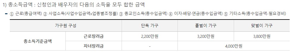 총소득금액 : 신청인과 배우자의 소득을 모두 합한 금액