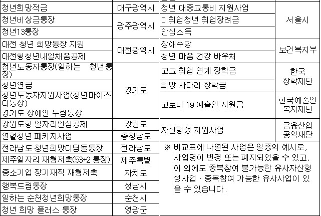 - 신청인 본인이 유사자산 형성 지원사업에 참여한 이력이 있는 경우
