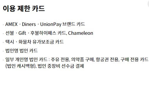 신청하기 전에 애플페이 적용 되는지 확인하시기 바랍니다. 아래 이미지에서 이용제한 카드 확인 해보세요.