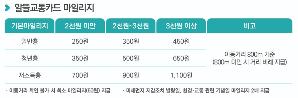 알뜰교통카드 마일리지 적립 사용 안내
